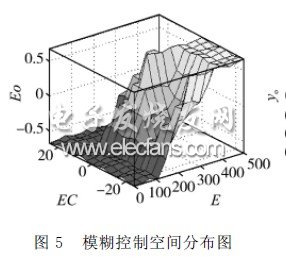 模糊控制规则表如表1所示,模糊控制的空间分布如图5所示。