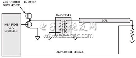 推挽驱动器有很多好处:这种架构只用到n通道MOSFET(图4),这有利於降低成本和增加转换器效率;它很容易适应较高的转换器直流电源电压;采用更高的转换器直流电源电压时,只需选择具有合适的漏-源击穿电压的MOSFET即可。不管转换器的直流电源电压如何,都可采用同样的CCFL控制器。但采用n通道MOSFET的全桥和半桥架构就无法做到这一点。