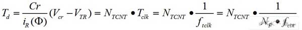 式中,NTCNT代表计数器计数的整数值,ftclk为计数器时钟频率,Np为缩放因子,fclk为主时钟频率。当接收到的光量增加的时候,Td减小,二极管放电加快;而当接收到的光量减少时,Td增加,二极管放电减慢。通过测量发光二极管的开和关的时间Td,能够发现并补偿环境光所导致的误差。由ftclk即可测量Td,且可以通过选择合适的Np来匹配单片机时钟。