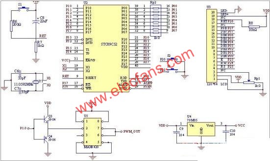 图4.1单片机及外围电路原理图