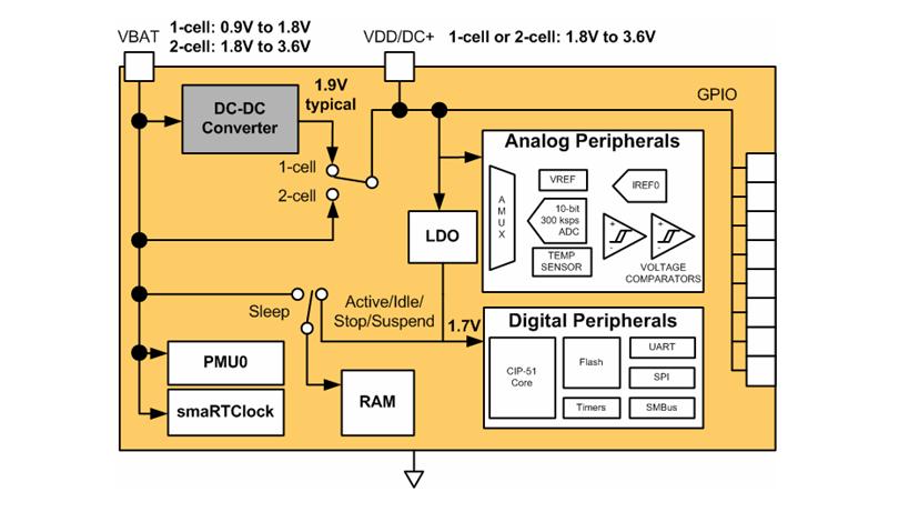 通过在微控制器上集成高效率和最佳化的电源器件,现在已能打造一个以单颗电池工作,整体电压低至0.9V的超低功耗且功能强大的系统单芯片。