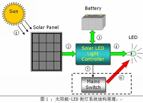 目前街灯普遍使用的是市电供电的高压钠灯结构,其中高压钠灯的电子驱动部分需要把市电从交流转化为直流,再逆变到交流来驱动,导致系统效率较低;而且由于使用的是市电,需要铺设复杂、昂贵的管线。太阳能-LED街灯则不具备以上的问题,由于太阳能电池板输出的是直流电能,而LED也是直流驱动光源,两者的结合更能提高整个系统的效率;太阳能的使用也免去了铺设电缆及其相关工程的费用。