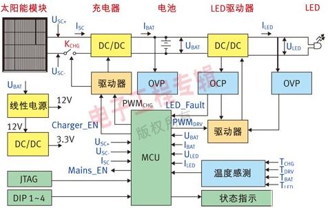 本文介绍的太阳能-LED街灯方案,能自动检测环境光以控制路灯的工作状态,最大功率点追踪(MPPT)保证最大太阳能电池板效率,恒电流控制LED,并带有蓄电池状态输出以及用户可设定LED工作时间等功能。
