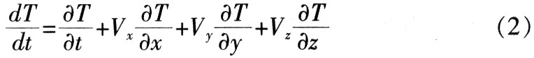三维直角坐标系中的瞬态温度场场变量T(x,y,z,t)满足: