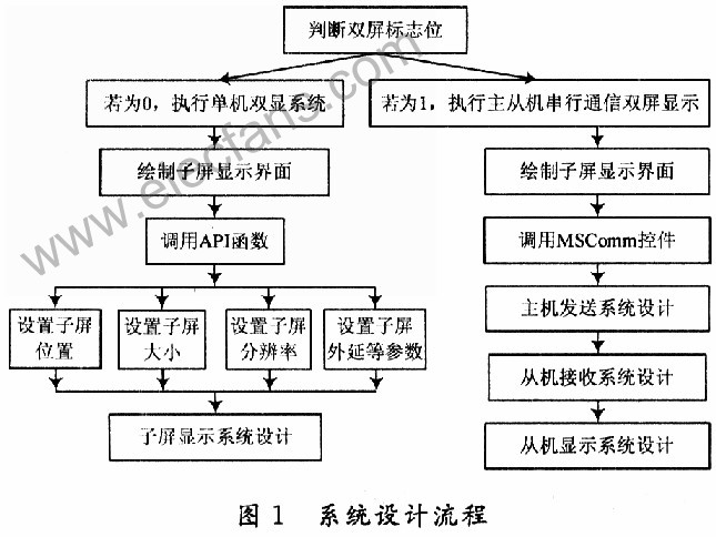 该软件是在Visual Basic 6.0环境下设计的,两种实现方法:一是单机通过调用API函数实现双屏显示;二是主从机之间通过串行通信实现双屏显示,这样能够满足不同硬件环境的需求。
