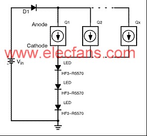 采用固定电压电源供电的电阻是最简单、最低成本的稳流方法。实际上,它们并不稳流,只是在 LED 正向电压变化及源电压变化并导致电流变化从而引起亮度变异时,简单地限制最大电流。对于低电流指示器应用而言,这可能可以接受,但随着电流增大及串联的 LED 数量增加,就变得有问题了。要克服这个问题,需要费钱又费时地对 LED 进行编码及选择恰当的电阻来匹配 LED 串正向电压。即使采取这些步骤,仍然会有由输入电压变化导致的亮度变化问题。