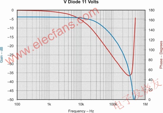 设计人员将测试电路的DC电压增加到11V,并且重复测量类似的结果。极点并未随着光耦合器的增大电流而明显变化。