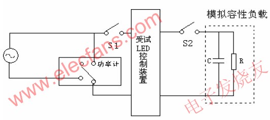 对于LED 控制装置,除了整体式(控制装置和LED 做成不可拆开的一体式结构)并且能看清其负载不具有电容性特征外,其它的LED 控制装置即应通过本条试验。试验线路见图5。