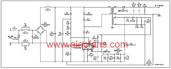 图3。隔离不调光通用输入7W LED驱动器电路图
