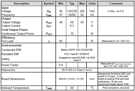 The key goals of this design were low profile and high efficiency. This was to allow the driver board to fit into the space behind the LED load board inside a T8 tube and operate with an acceptable temperature rise. This necessitated careful selection of components and mounting methods but was simpler than alternate solutions due to the low component count required for a primary side regulated LinkSwitch-PH design.