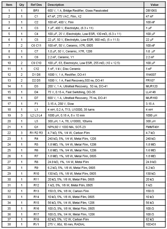 This document contains the LED driver specification, schematic, PCB diagram, bill ofmaterials, transformer documentation and typical performance characteristics.