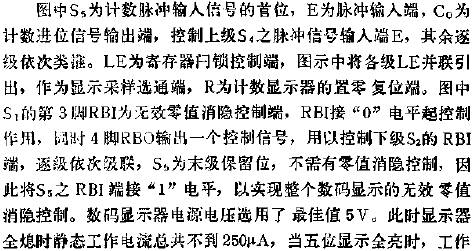 图中所示是用CL102进制计数显示器组成的五位数码显示器线路.单块CL102十进计数显示器对输入时钟脉冲就能直接进行数码显示,不须外接其它元件.将多块CL102十进计数显示器作显示.逐级联接的原则是根据控制功能表及实际功能需要,相应的管脚接"0"电平或"1"电平或者级间直接相联.