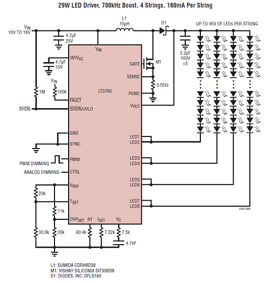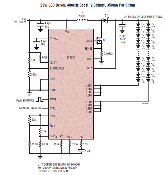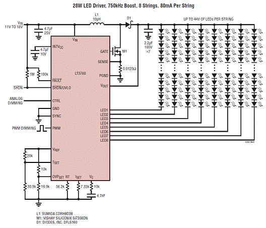 Linear LT3760 8路LED驱动解决方案 (应用电路)