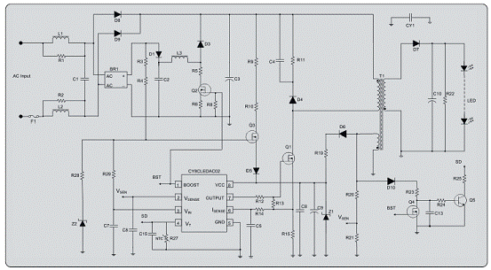 基于CY8CLEDAC02的17W LED驱动器设计方案