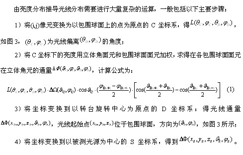 根据亮度分布推导出光线分布,通过软件生成数百万条光线,每根光线都包括起点位置、方向向量和通量[2]。