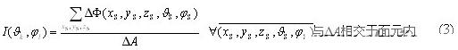 在全空间分布光度学中,通过光线追踪的方法求得落在空间任一面元的光线光通量,即任一截面的照度,而无论该截面在何位置,是否为曲面,用光线追踪法计算截面照度的表达式为: