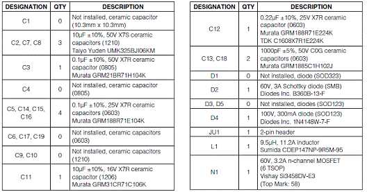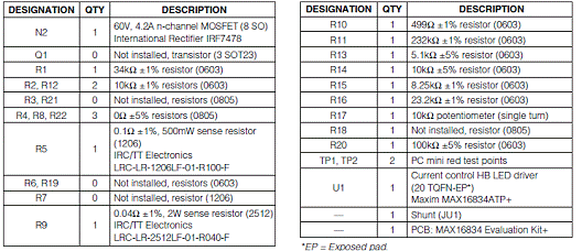 MAX16834评估板材料清单(BOM):
