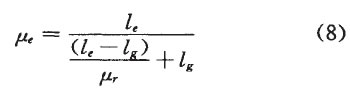 式中,μe磁芯的有效磁导率,胁为磁芯的相对磁导率,μr为磁芯的有效磁路长度,名为非闭合气隙长度。