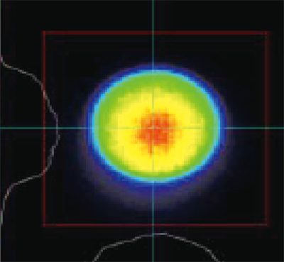 试验选用JK704激光器做直接传输光束钻孔。这种激光器可提供很高的峰值功率(见表2)和很好的脉冲稳定性,非常适合加工小径孔(0.25~0.90mm)。激光器的高斯光束质量(见图3)和增强的控制和脉冲整形特性为加工包括具有隔热涂层材料在内的航天材料时提供了更大的灵活性。