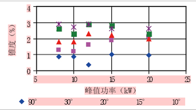 图9和图10 表示了两种激光器分别在2mm厚的材料上加工不同角度孔的典型锥度。虽然两种系统产生的锥度非常相似,但是可以看出,使用光纤传输系统加工出孔的圆度要比使用光束传输系统加工出的要好,因为光纤能使激光分布更均匀。图11展示了用两种激光器加工出的孔的截面,可以看出,用两种激光加工出的垂直孔的锥度在深度方向并不一样,尤其是在孔的中心位置变化很大,图示反馈给我们的由于激光参数导致的锥度差异,激光峰值功率密度对孔形状的影响。如今的研究表明,表面凸度的产生,主要是在孔的中心部位,而且更多的是发生在高能量密度的情况下。由此推测,可能是因为等离子体的形成明显地减少了在孔成形的过程中蒸发带走物质的作用。在表面上加工一个锐角的孔时没有表面凸起产生,可能是因为光斑在一个角度被拉长,而使能量密度减弱的缘故。