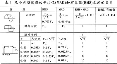 AD536A对复杂的电压波形(交流成分加直流成分)的有效值进行测量。而平均值MAD和有效值RMS之间的关系是随波形的形状不同而不同的,从表1几个例子可以看出。