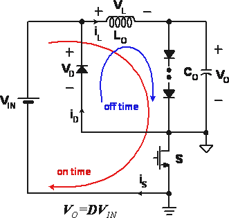 电感值由输出功率和最小开关频率决定。最小开关频率必须高于音频 (20KHz),这是为了防止音频噪声。最大开关切换周期,即Ts的最大值是VIN峰值和输出电压Vo的一个函数;若选择适当的Vo,它可在输入电压最高或最低时达到最大值。