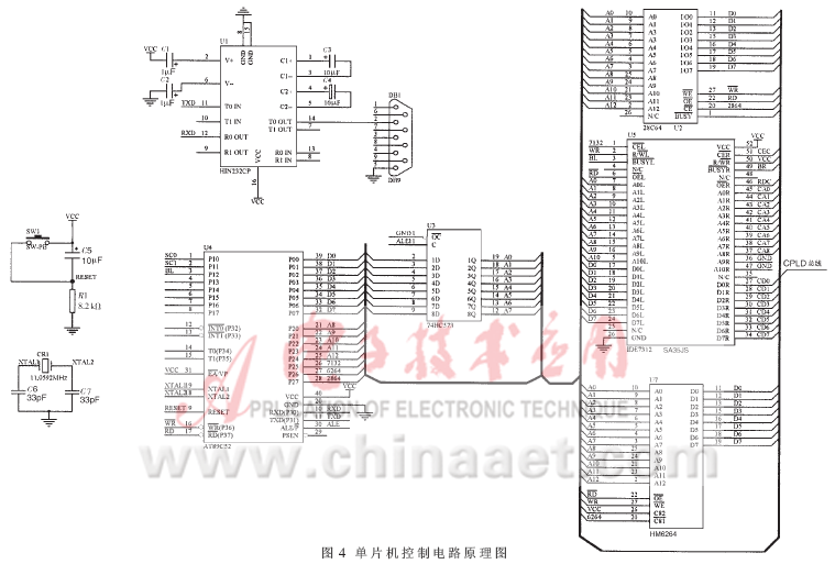 本系统采用ATMEL公司的8位单片机AT89C52,主要完成数据处理、存储和通信功能,其原理图如图4所示。