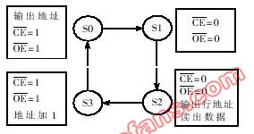 时序电路中一般留有复位信号,当复位端为1时,地址计数器复零,地址输出复零,片选。读控制信号置1,使状态机回到状态S0。
