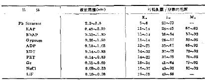 平面分光晶体虽然可将各种不同波长的X射线分光展开,但由于只有一点产生的X衍射线强度很低,探测器接受到的信号将很弱。为此最好采用X射线聚焦的办法,即将多点衍射线汇聚起来以增大强度。由于X射线无法通过透镜聚焦,故而只能采用弯曲晶体聚焦的办法来实现。 弯曲晶体的聚焦条件要求X射线源(样品表面被分析点),分光晶体和X射线探测器三者处于同一圆周上(聚焦圆)。晶体被弯曲到其衍射晶面的曲率半径等于2R,并将表面研磨成曲率半径与聚焦圆相符。此时,由于衍射晶体的曲率中心总是位于聚焦圆的圆周上(如M点),由S点光源发射出的呈发散状态的复合布拉格条件的同一波长的X射线,经C处的分光晶体反射后聚焦与D点。如果将检测器的接收窗口狭缝放在D点,即可接受到全部晶体表面强烈衍射的单一波长X射线。 下表列出了波谱仪常用的分光晶体的基本参数和可测范围。