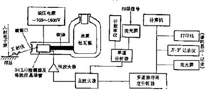 例如对Fe的Kα来说,V=0.27mV,对Cu的Kα,V=0.34mV。可见,锂漂移硅固态检测器的作用是将X射线转换成电信号,产生电脉冲。这个很小的电压脉冲通过高信噪比的场效应管前置放大器和主放大器的两次放大产生足够强度的电压脉冲。放大后的信号被送入多道脉冲高度分析器。