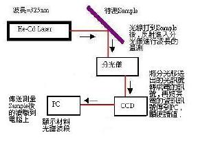3、Photo Luminescene(光激发光谱仪):是一 种利用光学物理特性式量测材料结构的发光 光谱(图三)。将待测Sample固定在Sample Chamber上,再调整其角度使He-Cd Laser (波长λ=325nm)能够准确的打到Sample 待测面上,并调整Sample之角度使He-Cd Laser能产生全反射进入分光仪中,来进行材 料结构的发光光谱特性分析。由图三来说明 PL如何产生反射光波来进行分光,分析材料的发光光谱。当入射光波角度为 θ时,光行进到Sample界面时,会产生一道反射光,而这道光是由UV波段 的He-Cd Laser产生的。