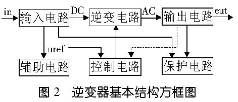 逆变装置的核心,是逆变开关电路,简称为逆变电路。该电路通过电力电子开关的导通与关断,来完成逆变的功能。电力电子开关器件的通断,需要一定的驱动脉冲,这些脉冲可能通过改变一个电压信号来调节。产生和调节脉冲的电路。通常称为控制电路或控制回路。逆变装置的基本结构,除上述的逆变电路和控制电路外,还有保护电路、输出电路、输入电路、输出电路等,如图2所示。
