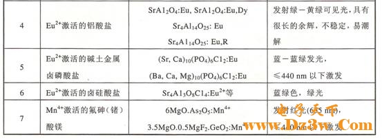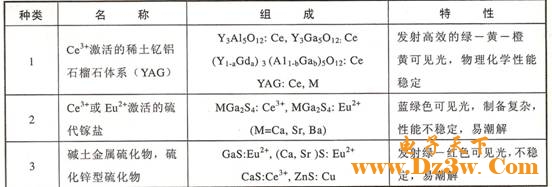 表1 各种荧光粉的化学成分及其应用