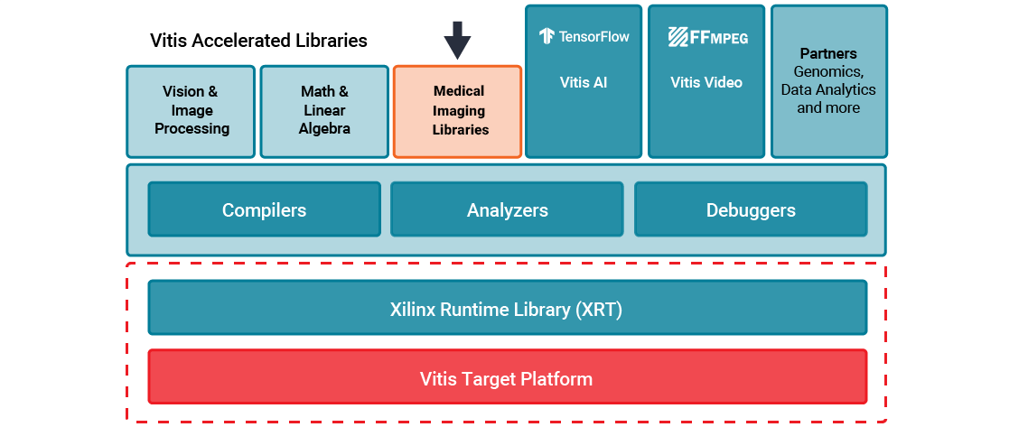 为了向医疗机构及其患者提供更优异的成像系统性能,我们宣布推出首批医学影像库( medical imaging libraries),作为我们 VitisTM 统一软件开发平台最新正式版(Vitis 2022.2) 一部分。这些全新的加速库能助力客户缩短开发时间,使其医学影像产品更快推向市场。Vitis 库通过搭载 AI 引擎的 VersalTM 器件加速医学成像,支持实时采用高级成像算法,从而在优质医学成像设备上显著提升成像质量、影像加载速度(包括超高清 3D/4D )与最佳扫描深度。