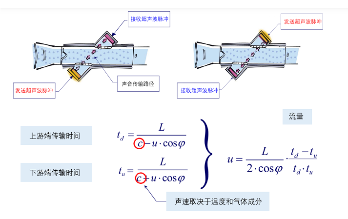 在肺功能检查仪中超声波诊断是利用一对超声波换能器相向交替(或同时)收发超声波,通过观测超声波在介质(气体或液体)中的顺流和逆流的传播时间差来间接测量流体的流速,再通过流速来计算流量的一种间接测量方法。