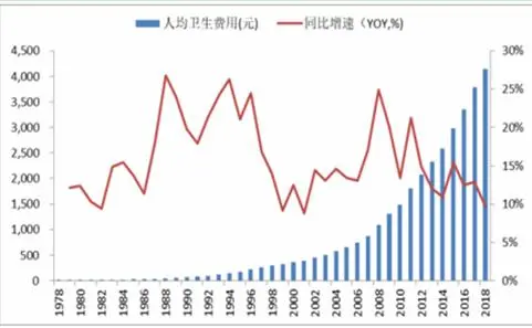 图表:我国人均卫生费用快速增长