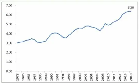 图表:我国卫生费用支出占GDP的比重(%)