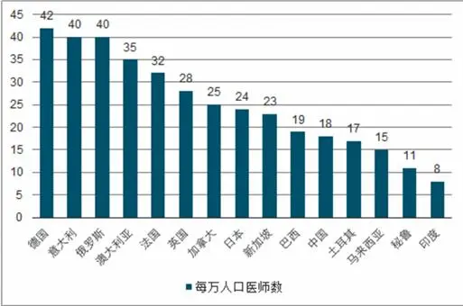 图表:世界不同国家每万人口医师数