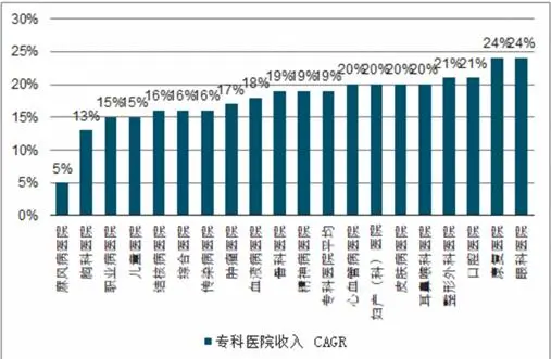 图表:2008-2018各类专科医院收入CAGR对比
