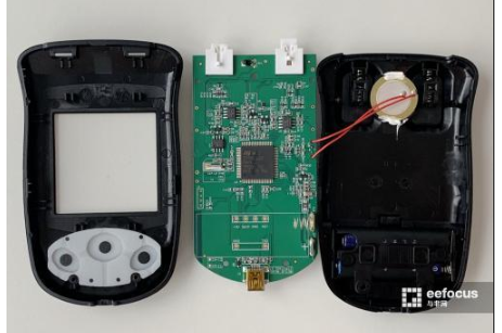 这个血糖尿酸测试仪的拆解非常简单,只有两颗螺丝固定,拆解完成的图如下所示。