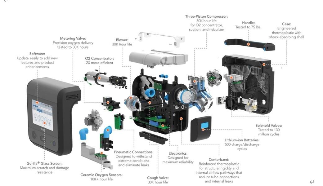 图2:Venteclife的呼吸机零部件拆解图。