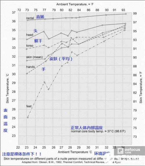 体温:在特定的某一人体部位所测得的温度。针对人体的各个部位,温度通常会因为检测部位和环境参数的不同,而呈现不同的温度曲线,下面是一张对比表: