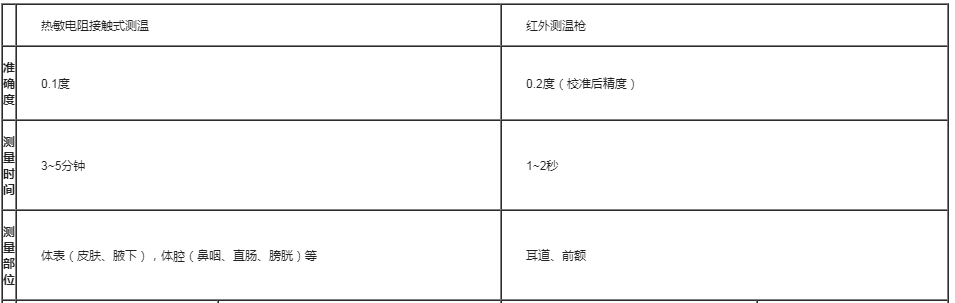体温测量分为接触式和非接触式,接触式的以负温度系数热敏电阻原理(NTC: negative temperature coefficient)为主,非接触式的以红外原理(IR: Infrared)为主: