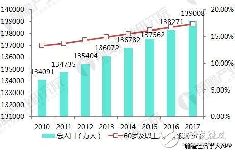 图表1:2010-2017年国内人口以及60岁以上的人口统计(单位:万人,%)