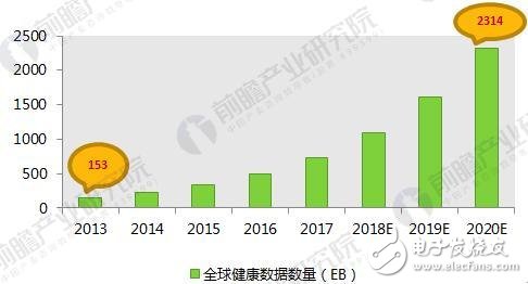 图表5: 2013-2020年全球医疗大数据数量及预测(单位:EB)