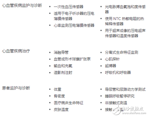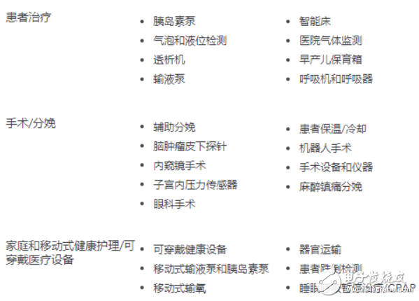 还包括导尿管传感器、辅助胎儿分娩等应用。