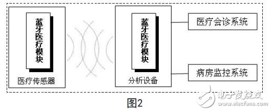 蓝牙系统在医疗领域应用的主要模式图如图2所示: