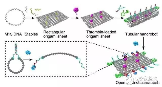 这种DNA折纸技术就是DNA纳米机器人的基础。研究人员们为其DNA薄片进行编程,将其卷曲成围绕凝血酶周围的管道,然后将DNA机器人植入患有癌症肿瘤的实验鼠体内。