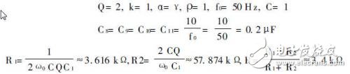 工频干扰属于共模信号,对心电信号的干扰特别强。因此,必须从模拟、数字两方面加以抑制。工频干扰的消除在模拟电路中可用二阶压控电压源带阻滤波器来实现。参数选取如下: