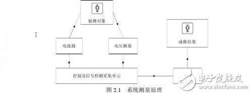 经历了近20年的发展,EIT成了一个有一定基础的研究领域。各研究机构也相继推出各自的研究方法与系统。大多数研究机构都是通过在人体成像部位周围布置电极,将信号源通过电流施加到人体成像部位,同时测量边界电压或电流,通过各种方法获得或存储分析测得传输复阻抗数据,利用这些数据通过重建算法进一步处理成像。其原理如图2.1所示。